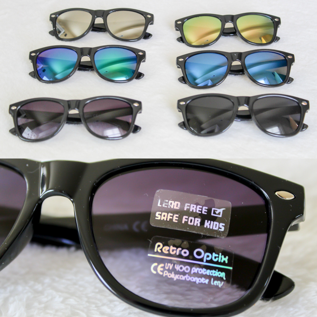 Let your kids channel their inner beach bum with these classic shaped sunglasses. 6 different colors to fit their unique style. Plastic fully rimmed with polycarbonate lenses.
