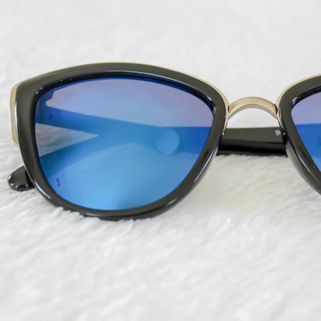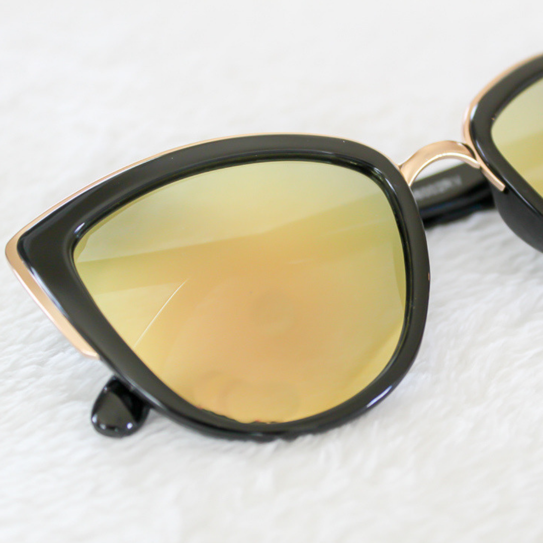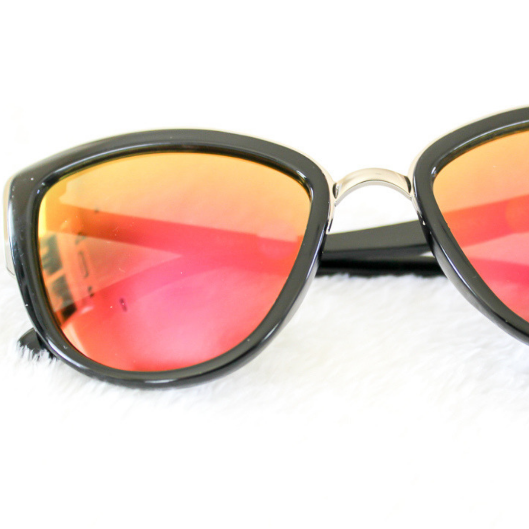 You can strut your stuff all day in these iconic cat-eye sunglasses with an updated twist of metal accents and mirror finishes.