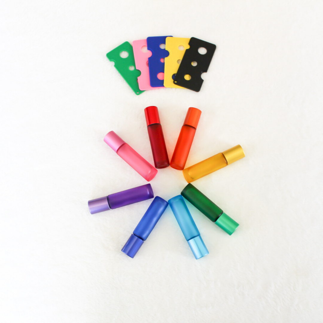 You can never have too many roller bottles if you are using essential oils to make your own blends or sharing samples with your friends and family. These beauties will let you add a little color to your oil blends.