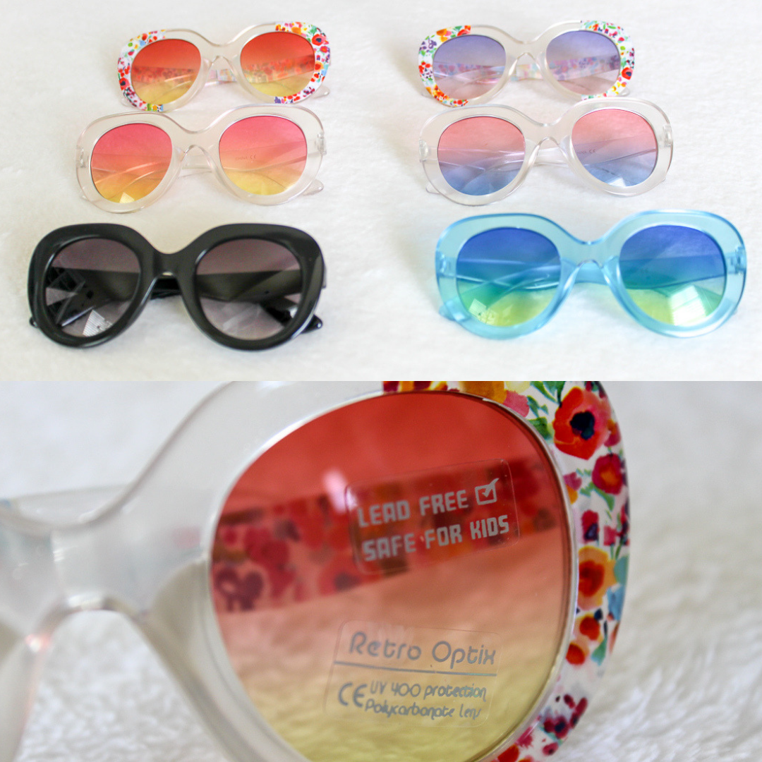 These fun sunglasses are perfect for kids who want a groovy retro vibe. Translucent fully rimmed frames with just a hint of cat eye come in 6 colors to suit their moods from classic black to floral with two-toned lenses.