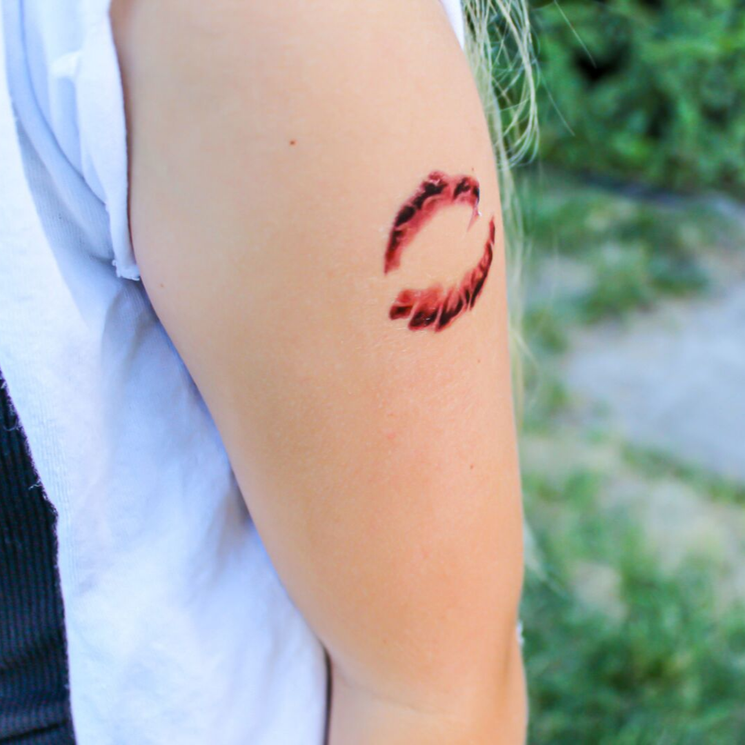 Directions for use: Cut around the tattoo you want to use. Remove the plastic cover and place the tattoo face down where you want it to be. Hold a damp washcloth firmly over the tattoo for 10-30 seconds, remove the washcloth and gently remove the paper covering. If tattoo is still attached to paper, reapply washcloth for a few more seconds and check again.