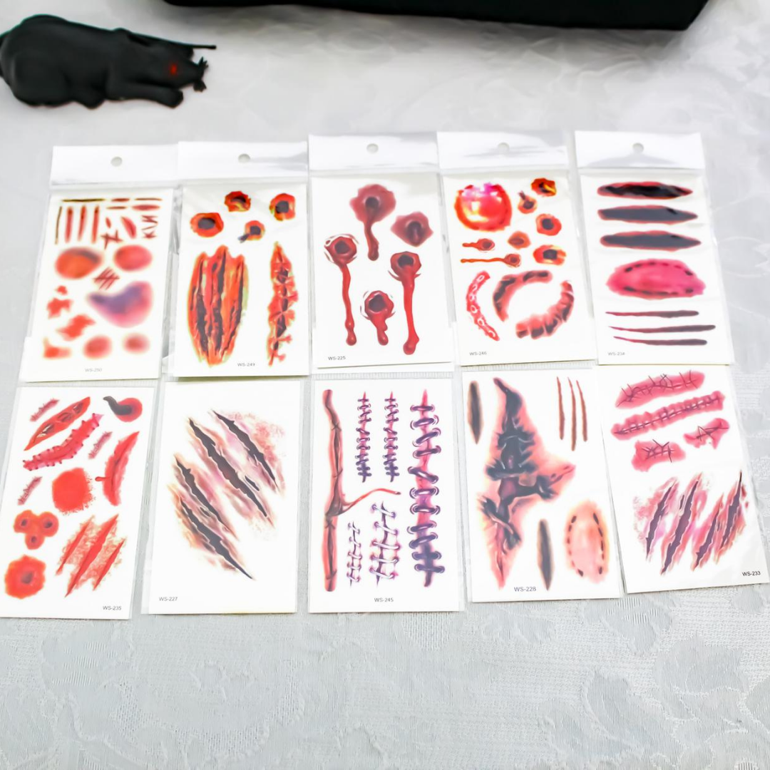 From cute and fun to super-gross, these temp tattoos will add another dimension to your Halloween celebrations. These are perfect for kids carnivals or are an easy way to spice up your creepy look without having to invest in a ton of fancy makeup. Sets of 10 random sheets of fun, glow in the dark, or creepy styles.