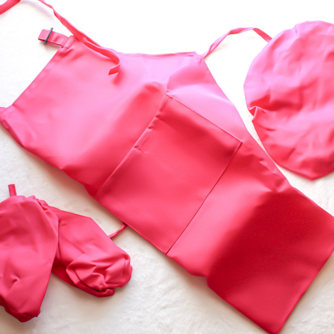 Let their imaginations (and reality) run wild with these bright apron sets. Each set comes with an apron, chef hat, and 2 sleeves (shipped with 1 tucked inside the other). These will help keep your little chefs protected from splatters while cooking up their signature dishes. 7 colors to choose from.